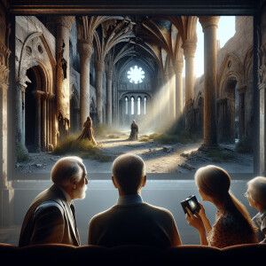 «Create a digital artwork showing a half-portrait of a light-skin...»