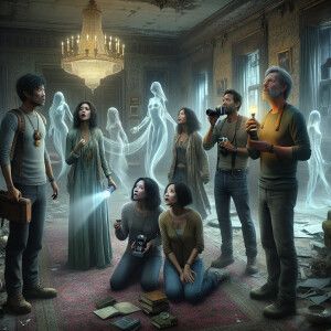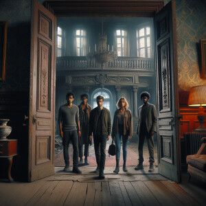 «2 guys and 2 girls are standing in an abandoned mansion. They se...»