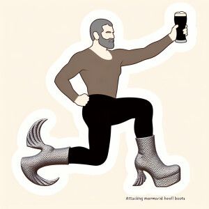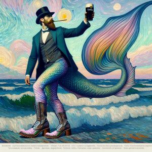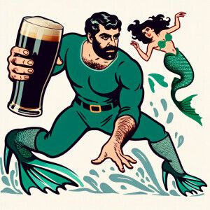«Armenian man with pint Guinness in hand, attack mermaid heel»