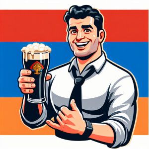 «Armenian man with pint Guinness in hand»
