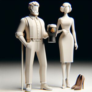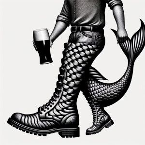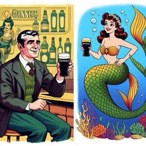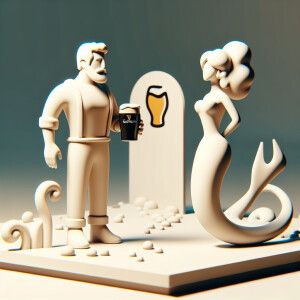 «Armenian man with pint Guinness in hand, mermaid girl heel»
