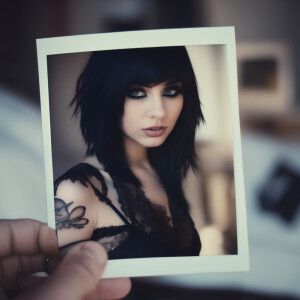 «Polaroid photo of sexy emo girl with nipple piercings»