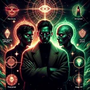 «Create an image featuring silhouettes or blurred faces of two fi...»