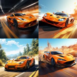 «Fast orange car on a race, summer»
