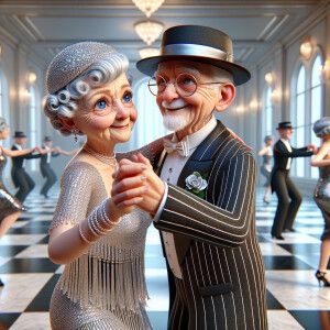 «3d whimsical full body view, realistic illustration of a elderly...»