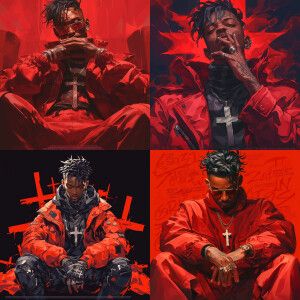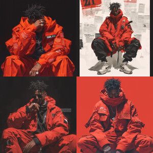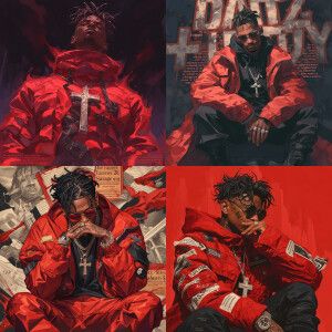 «"The rapper 21 savage face and wearing stylish red outfit sitti...»