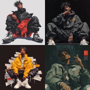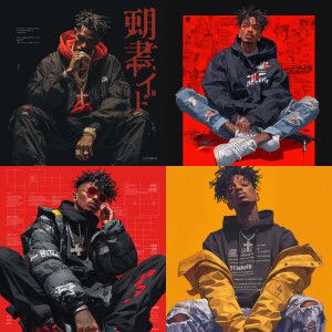 «"The rapper 21 savage face and wearing stylish outfit sitting i...»