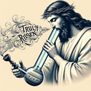 «Иисус курит бонг затем выдыхает дым и дым превращается в слова «...»