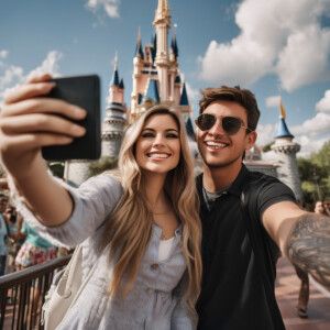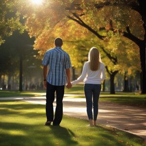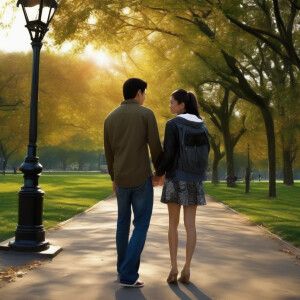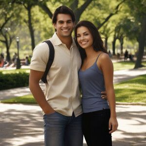 «A young couple at a park in 2008. She is short and He is tall. S...»