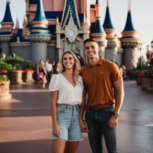 «A young couple out at Disney world smiling.»
