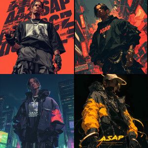 «"ASAP Rocky realistic face wearing Puma in realist style surroun...»
