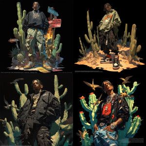 «"Travis Scott face surrounded by Green cactus wearing brown Jord...»