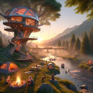 «Forest, river, barbecue sunset, squirrels, tent, campfire, fishi...»