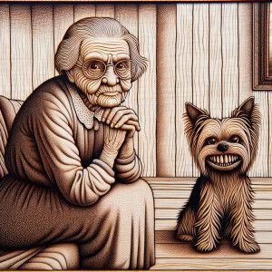 «Whimsical old lady with a sullen look sitting in her living roo...»