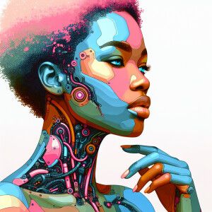 «A pretty woman with colored sparkling dreads that glow like neon...»