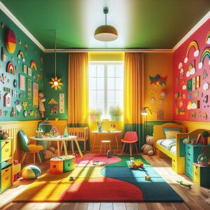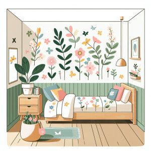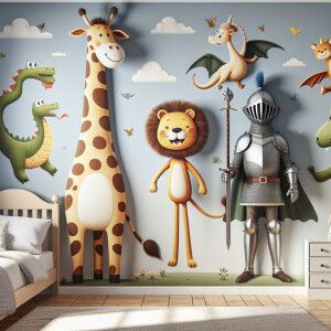 «персонажи из мультфильмов или книг на стенах в детской комнате»