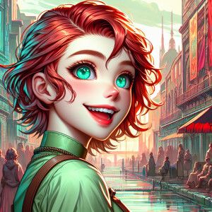 «1girl, uzumaki in anime noruto, red hair, blue eyes, beautifull,...»