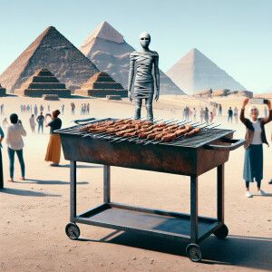 «Мангал для шашлыков стоит в Египте на фоне Египетских пирамид»