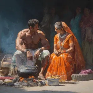«Hyperrealism photorealism.a beefy muscular sweaty criminal gujar...»