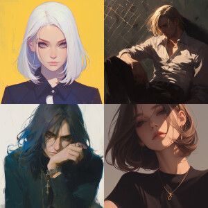 «A beautiful girl with long white hair, and two braided braids. O...»