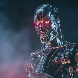 «Tu pacc as a T-800 Terminator endoskeleton, polished chrome hype...»