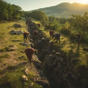 «“Mesoamerican workers channeling spring water through volcanic s...»