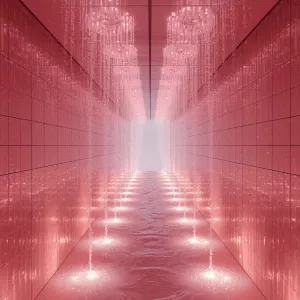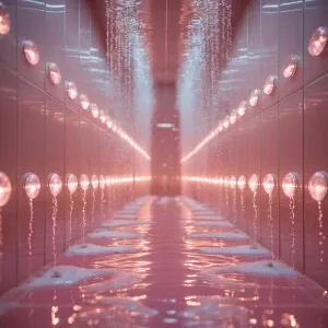 «Shower 3 – Crystal Jet Gallery: A sleek, luminous corridor of wa...»