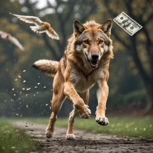 «A tsunami wave near coast causing panicking people to run for hi...»