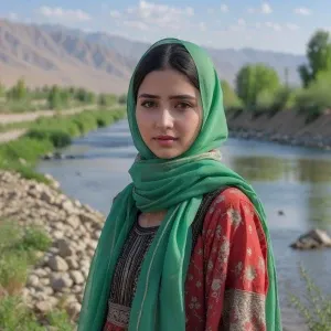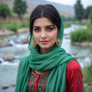 «Please create a beautiful picture of a very pretty girl, she is...»