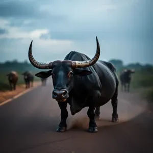 «Make an image of a cow with human legs and feet standing on 2 le...»