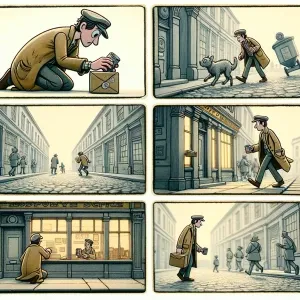 «Create a 5-panel comic strip with consistent characters and cons...»