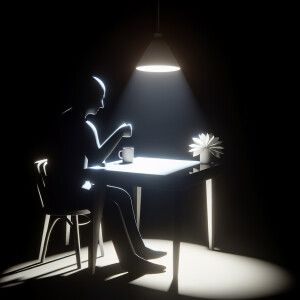 «Я сижу за столом в черном помещении, все предметы вокруг меня от...»