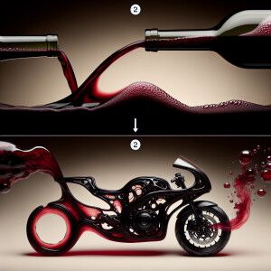 «Wine pouring out of a bottle, and as it gets near the table it m...»