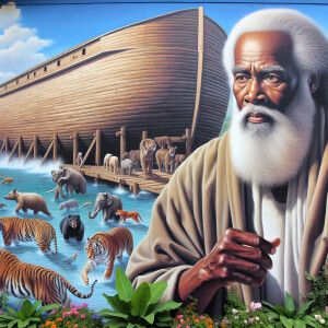 «A close-up and detailed wall painting focusing on Noah, depicted...»