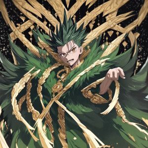 «Create an image of Gon Freecss from 'Hunter x Hunter' standing c...»