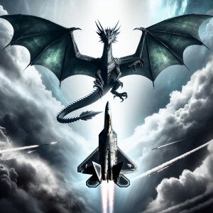 «Winged Dragon Falling from the sky as a F22 fighter jets dives t...»