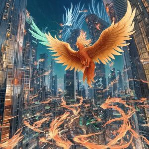 «Phoenix being born out of a cityscape showing health and wellnes...»