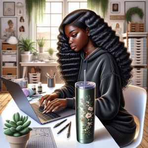 «A digital illustration of a poised Lightskin Black woman with lo...»