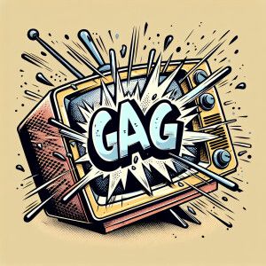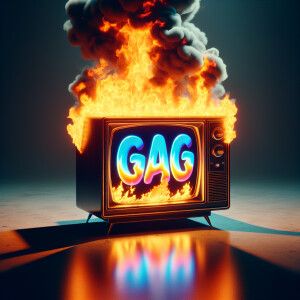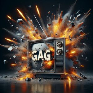 «A tube TV exploding with the word “GAG” on the screen»