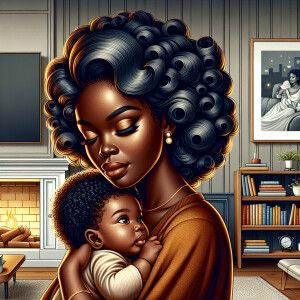 «A digital illustration of an African-American mother tenderly ho...»