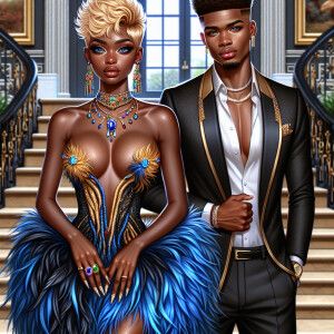 «A digital painting featuring a beautiful caramel-skinned African...»