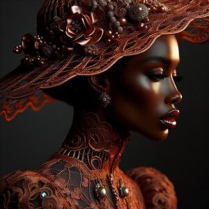 «A African-American Hawaiian woman wearing luxurious copper tatt...»