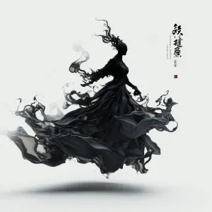 «A faceless woman formed of ultra-sharp tendrils of black ink, su...»