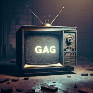 «Makes me an album cover. A tube tv with the word GAG on the scre...»