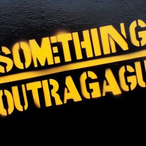 «Make me a spray paint stencil of the words “SOMETHING OUTRAGEOUS...»