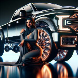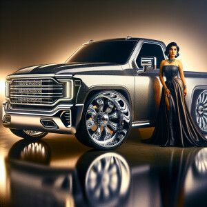 «Pickup Truck from a fantasy brand, wide body, 22 chrome wheels,...»