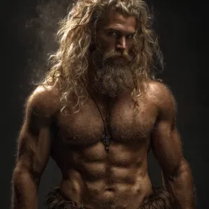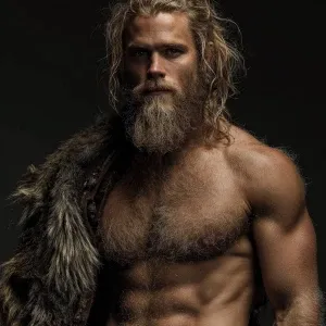 «Create an image of a muscular man with a Viking aesthetic. He ha...»
