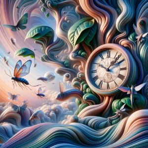 «A surrealist image of a dreamscape where clocks melt over tree b...»