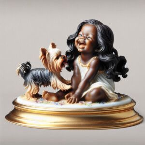 «Prompt: porcelain Statue of a light skin African-American girl w...»