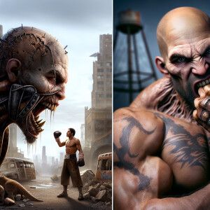 «Realistic image iof mike tyson with a kangaroo ear in his mouth»